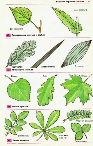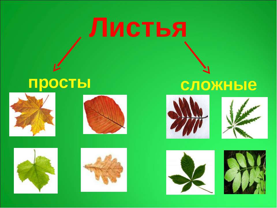 В основе данной классификации лежит количество и разделение листочков, растущих на одном черенке, либо из одного узла стебля (ствола). В соответствии с этим, самый простой тип – простой лист. Он характеризуется наличием только одной листовой пластинки и одного черешка. Пластинкой называется сама поверхность листа, то есть, его «полотно» с прожилками. У простого листа оно может иметь любую форму, но вырезы никогда не доходят до черешка. Листья простого типа всегда опадают вместе с черешком, не оставляя на дереве ни одной своей части.