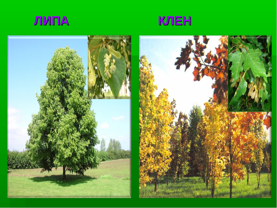 Осенний клен и весенний с тычиночными соцветиями (справа)