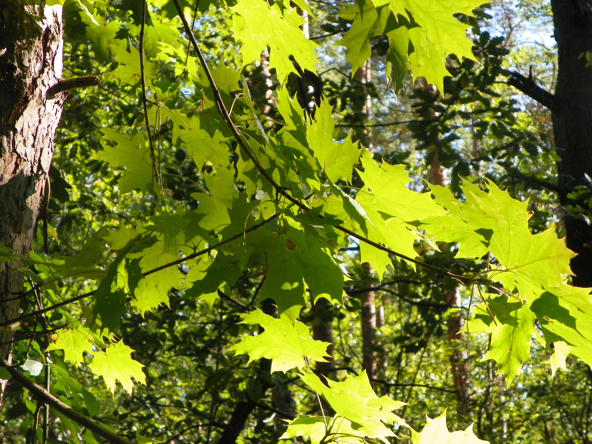 Еще один выходец из Северной Америки. Изредка встречается в городских зеленых насаждениях. Листья сверху темно-зеленые, глянцевые, по краю редко-зубчатые, голые, без опушения.