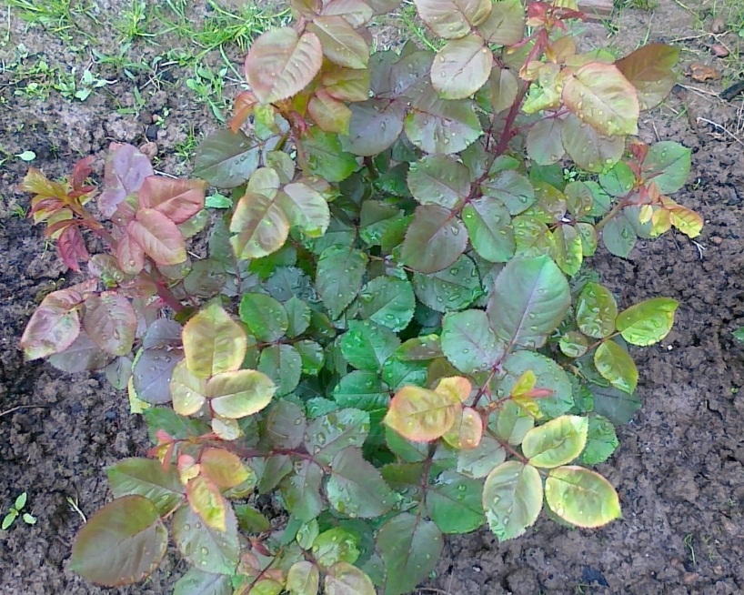 В первую очередь страдают листья, расположенные на нижнем ярусе растения. Кроме того, роза плохо цветёт, а если цветки всё-таки появляются, то они мелкие и блёклые.