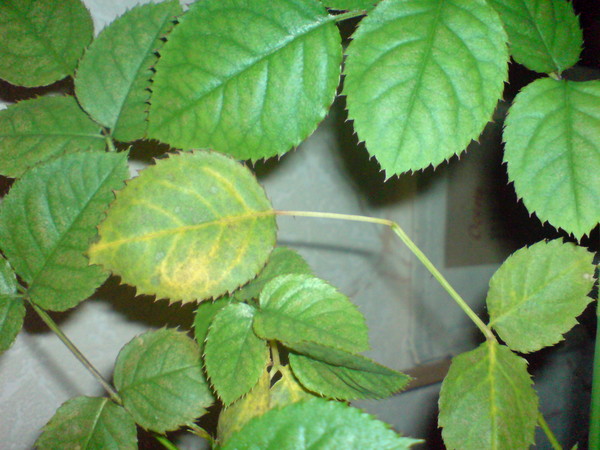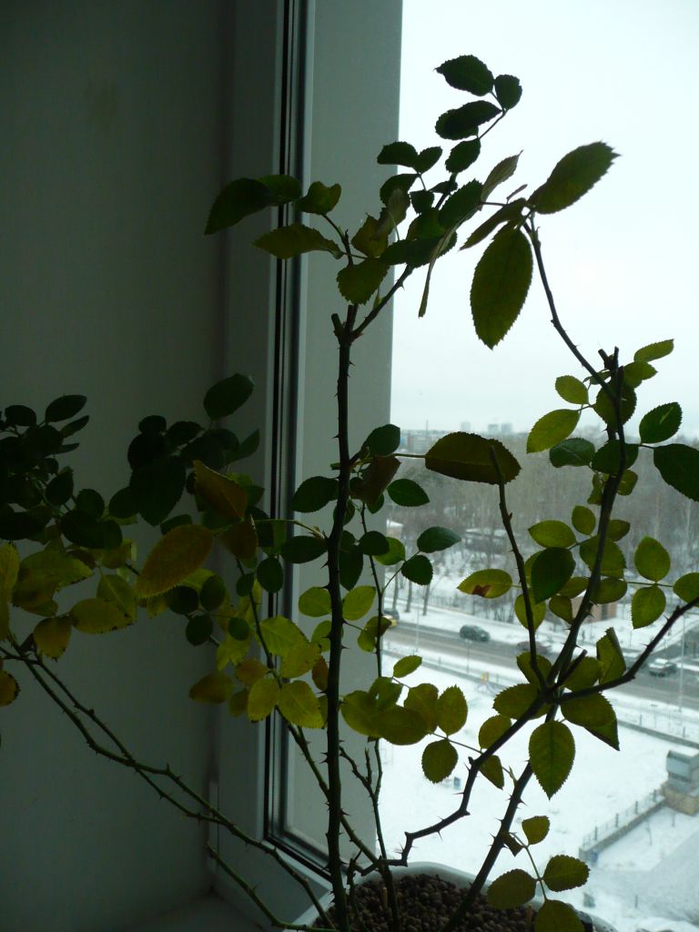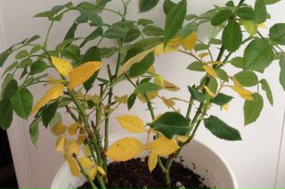 Если розовое растение посадить в тенистом месте на открытом грунте или расположить горшок с домашней розой на подоконнике окна, выходящего на север, то листья, находящиеся на части куста, куда не попадают солнечные лучи, начнут желтеть и затем опадать.
