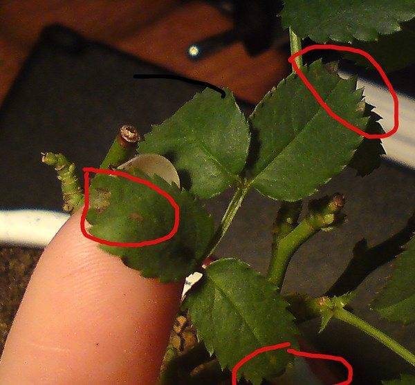 Еще один распространенный вредитель комнатной розы – щитовка. В этом случае на листьях и стеблях присутствуют множественные коричневые бляшки, а поверхность цветка становится липкой.