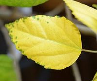 - азота — листовые пластины бледнеют и затем перед опаданием окрашиваются в жёлтый цвет;