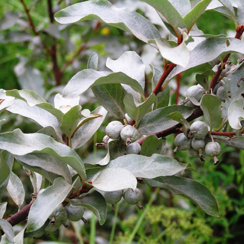 - лох серебристый. Кустарник с удивительным металлическим окрасом на листьях. Период цветения май-июнь на протяжении 2-3 недель. Мелкие, желтые цветки по форме напоминают колокольчик. Имеют приятный, нежный аромат ванили. К осени на кустах появляются круглые плоды. Они съедобны. Лох очень морозоустойчив, может переносить температуру до -40 градусов;