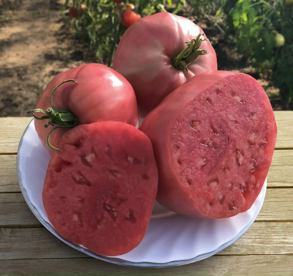 Вкусно 77 дней, неопределенно. Огромные красные гладкие плоды почти твердые и часто весят более 2 фунтов. Отличный вкус, крошечные семенные полости и очень небольшое растрескивание. Это сорт, который является мировым рекордом самого большого из когда-либо выращенных помидоров.