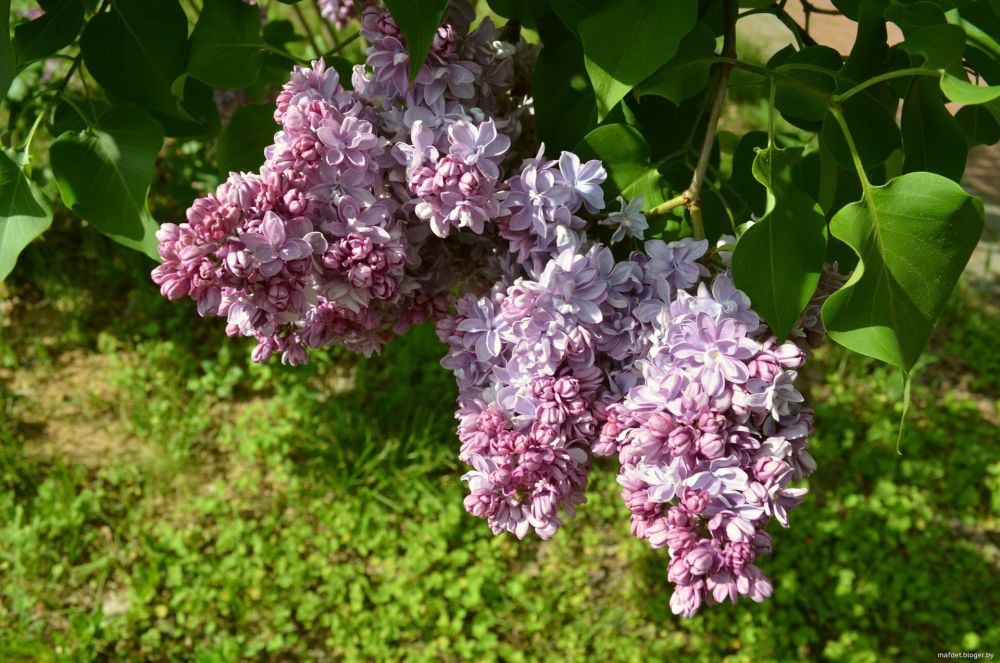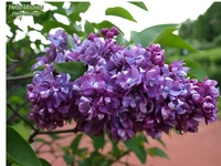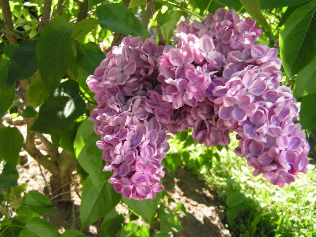 Сирень очень красива: цветки крупные, махровые, ароматные, нежно-лиловато-розовые, а бутоны темные фиолетово-пурпурные. Цветение обильное и продолжительное. Куст высотой около 3 м.