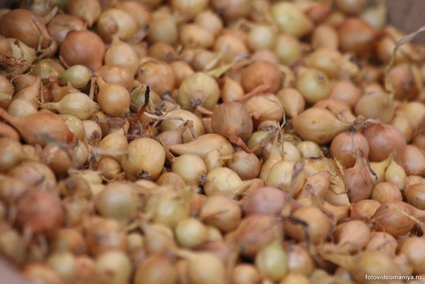 Лук, предназначенный под посев, после уборки нужно перебрать и отсортировать. Следует отобрать целые, неповреждённые и неподгнившие экземпляры. Также нужно отобрать овсюжок — очень мелкие плоды (меньше 1 см в диаметре), которые пойдут на высадку под зиму.