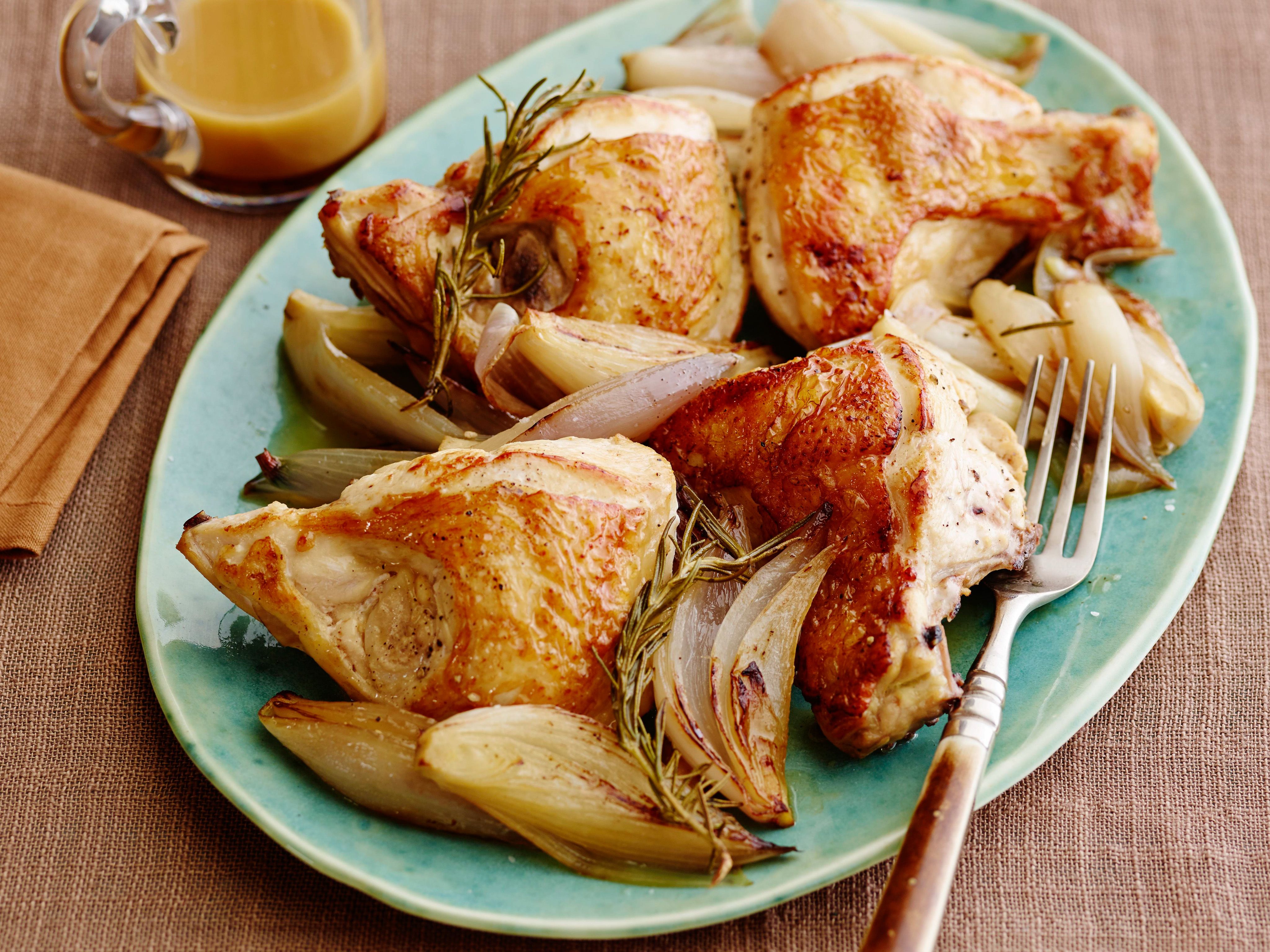 Куриные бедра с луком-шалот в красном винном уксусе (Poulet Au Vinaigre)