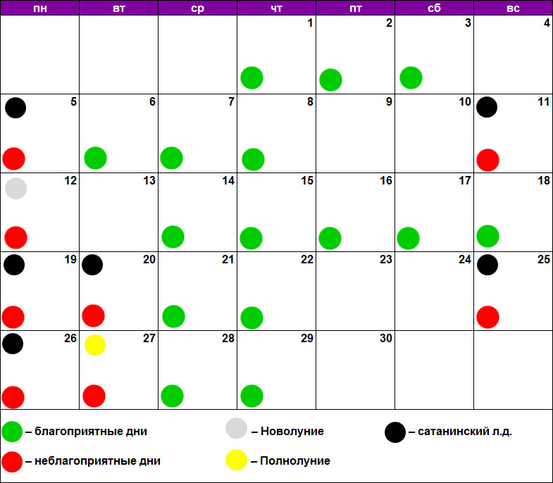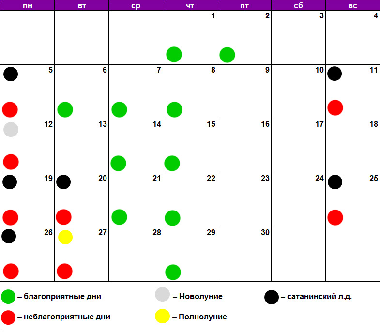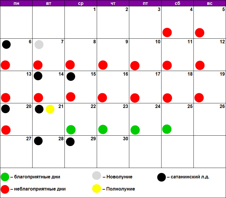 Благоприятные дни в сентябре 2020 г.