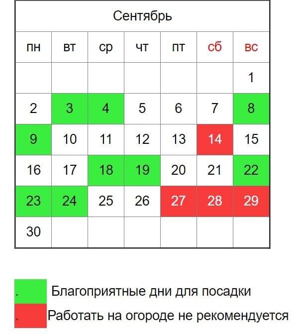 Запрещенные для посадки дни в сентябре 2020 г — 14, 27, 28, 29