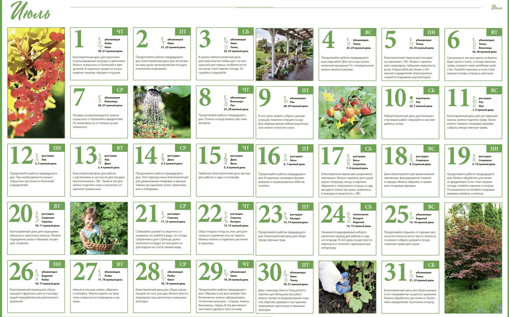 В зависимости от того, в каком знаке находилась Луна в момент сева, растения наделены определенными качествами.Может быть продуктивным с низкокачественными семенами или низкоурожайными высококачественными семенами, высокими или низкими, хрупкими или сильными. Поэтому посев, посадку и пересадку растений следует проводить, когда Луна находится в благоприятных знаках для обработки земли и полива: Телец, Рак, Дева, Весы, Скорпион, Козерог и Рыбы с учетом фазы Луны для разных растения. При этом проводят прививку, прививку, укоренение уса.