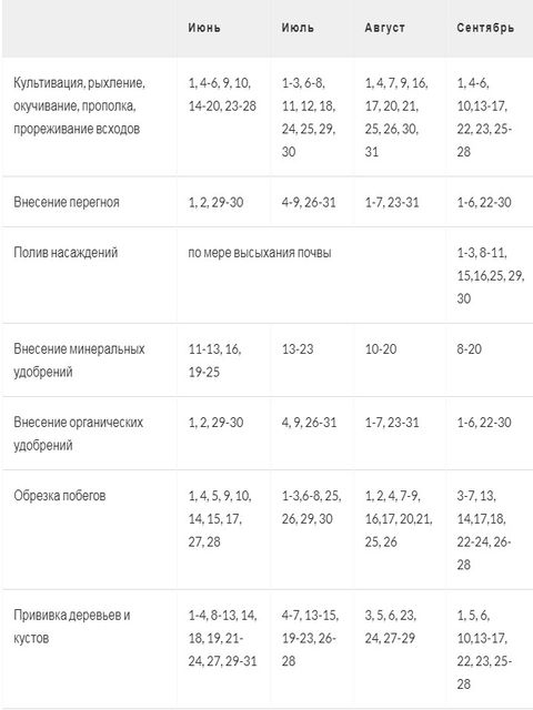 - Не рекомендуется — посевы, посадки, поливы, подкормки.