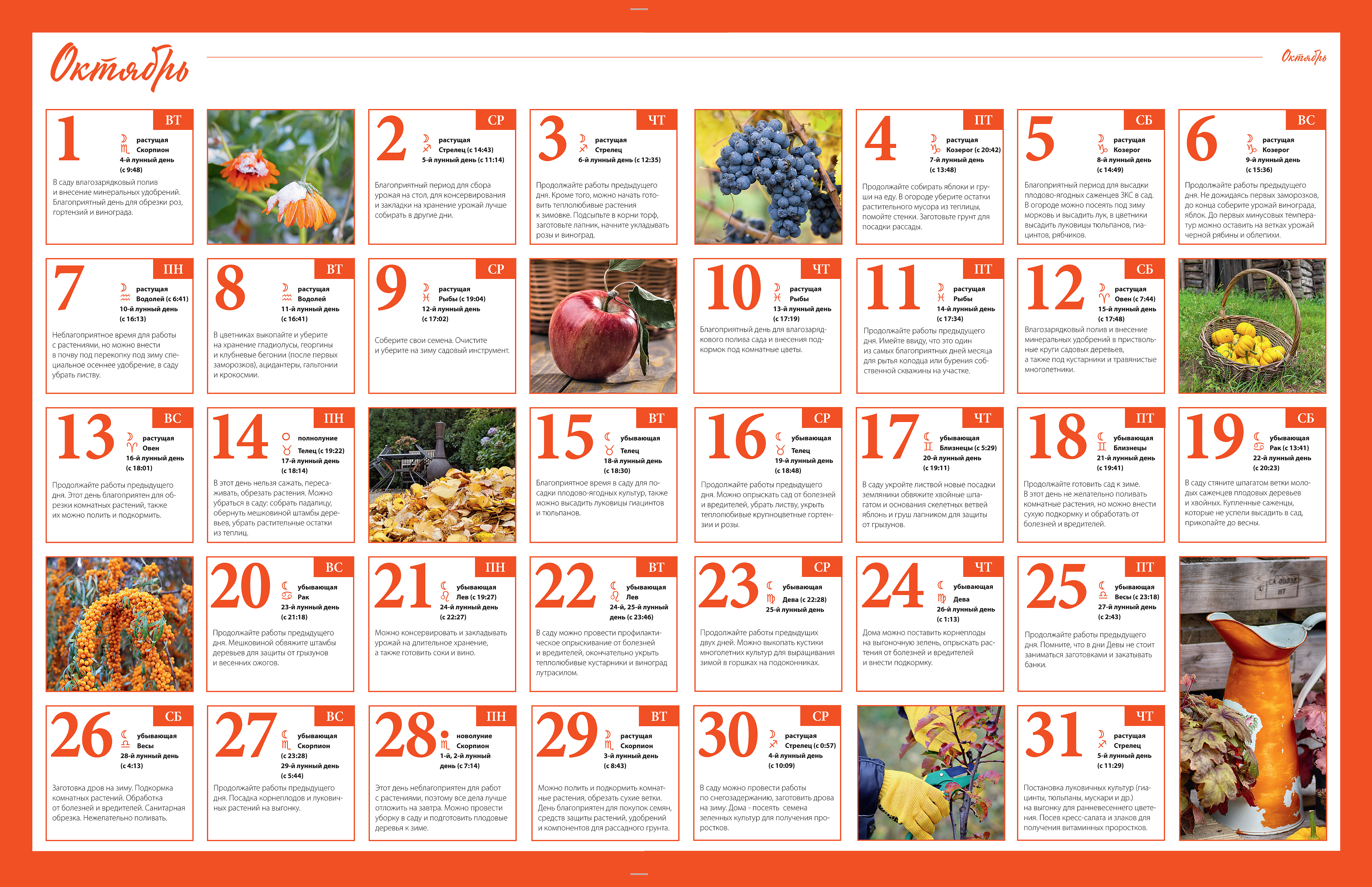 - Не рекомендуется — выкапывать картофель, заниматься делением клубнелуковиц и корней, обрезка.