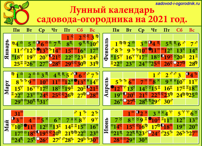 Это удачный период для борьбы с вредителями, удаления поврежденных и больных растений на участке.Растущая ЛунаБлагоприятствует работе с растениями, особенно овощами, плоды которых созревают над землей. В этот период разрешается пересаживать и обрабатывать растения, рыхлить почву. Сеют и сажают листовые овощи, плодовые растения, зелень.ПолнолуниеВо время полнолуния можно полоть, делать подкормку и обработку от вредителей. Благоприятный период для сбора урожая.Убывающая ЛунаПри убывающей Луне лучше всего работать с корнеплодами и растениями с побегом-луковицей. В эти дни стоит отказаться от пересадки и пикировки. Также не рекомендуется перекапывать и рыхлить почву вокруг посадок, обрезать растения и делать им прививки.ЯнварьВ январе подготавливают землю, ящики для рассады, проверяют, хватает ли семян тех растений, которые планируется сажать в текущем году.В этом месяце можно заняться следующими видами работ:Фазы Луны: 1.01 — убывающая, 2.01 — новолуние, 3-17.01 — растущая, 18.01 — полнолуние, 19-31.