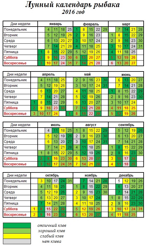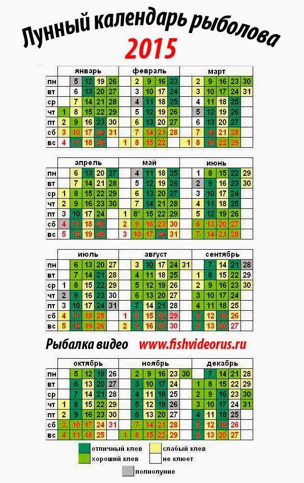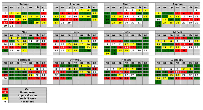 Лунный календарь для рыбалки и клева — таблица: