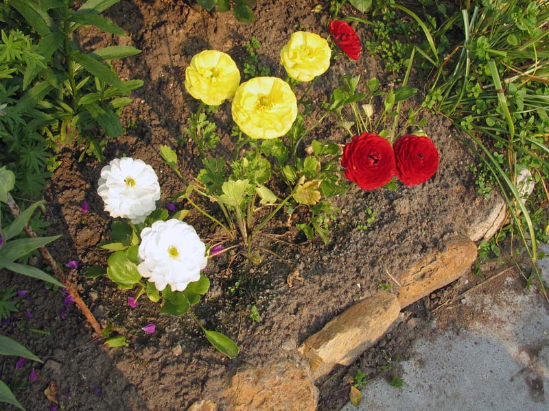 Рунункулюс не любит пересадок. Поэтому при формировании клумбы следует найти для него слегка затененное место с южной стороны.