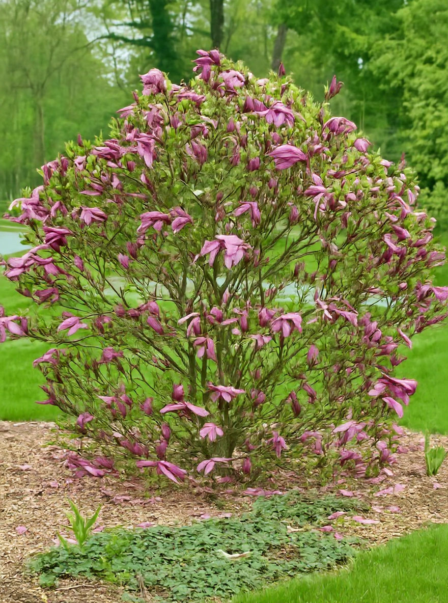 Magnolia x Loebneri ‘Leonard’s Conseli в форме, когда они открываются. Он остается управляемым размером в течение многих лет.