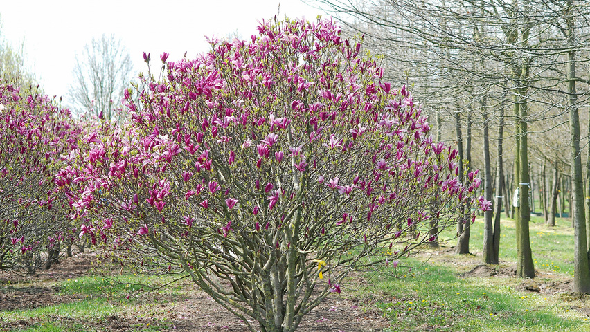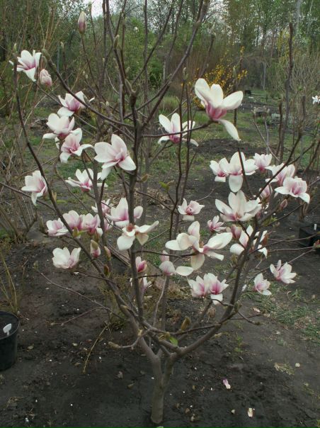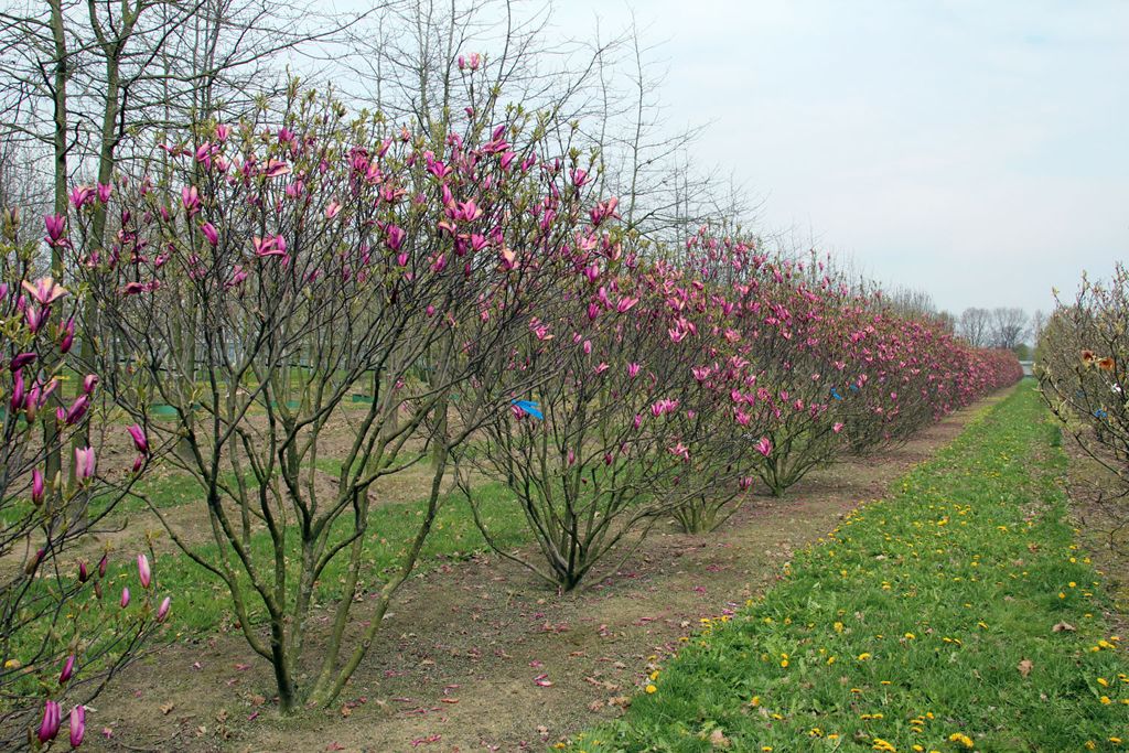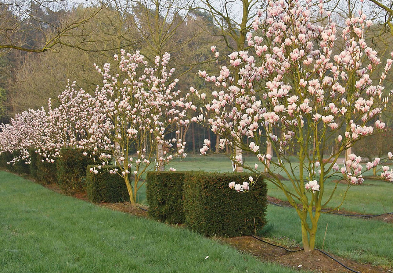 Отличительная особенность лилиецветной магнолии в том, что это раскидистый кустарник, который вырастает всего до 4 м в длину. Листья крупные и декоративные, цветки в форме лилии белые внутри и розовые снаружи. Этот декоративный кустарник получил широкое распространение во многих странах Европы и Азии. Голландия считается лидером по их производству, местные питомники постоянно выводят новые гибриды и поставляют саженцы всему миру. Морозостойкие виды, такие как магнолия Кобус, пользуются огромной популярностью в странах Восточной Европы и в США.