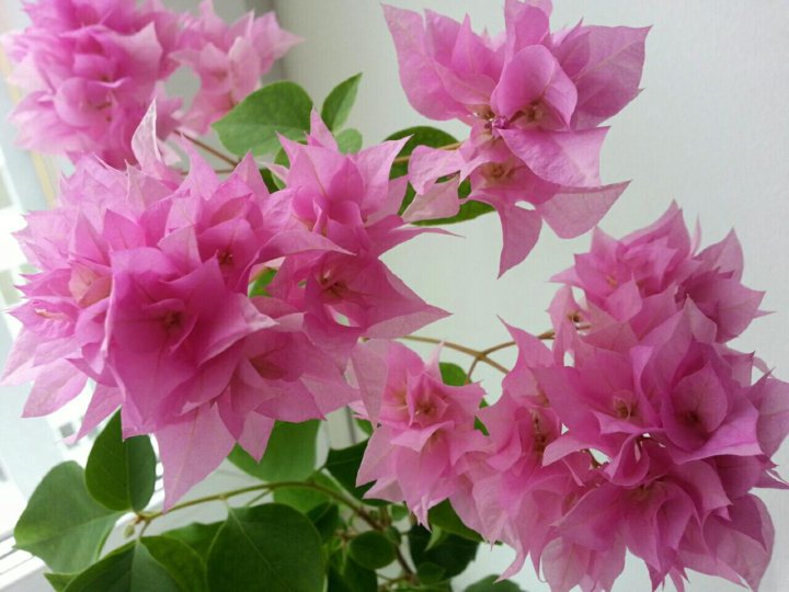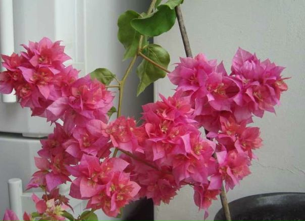 В наших широтах Бугенвиллию выращивают с помощью обрезки в виде кустарника, лианы или деревца-бонсай в комнатных помещениях или оранжереях, и только летом выносят в сад. Цветет она у нас с мая по ноябрь. При комфортных условиях во время цветения зеленые листья Бугенвиллии скрываются под яркими разноцветными шапками ее прилистников. Продолжительность жизни домашней Бугенвиллии не превышает пяти – десяти лет. Цветок не погибает, он просто перестает расти и постепенно одревесневает. Известно, что в оранжереях некоторые экземпляры Бугенвиллии доживают до 30 лет.