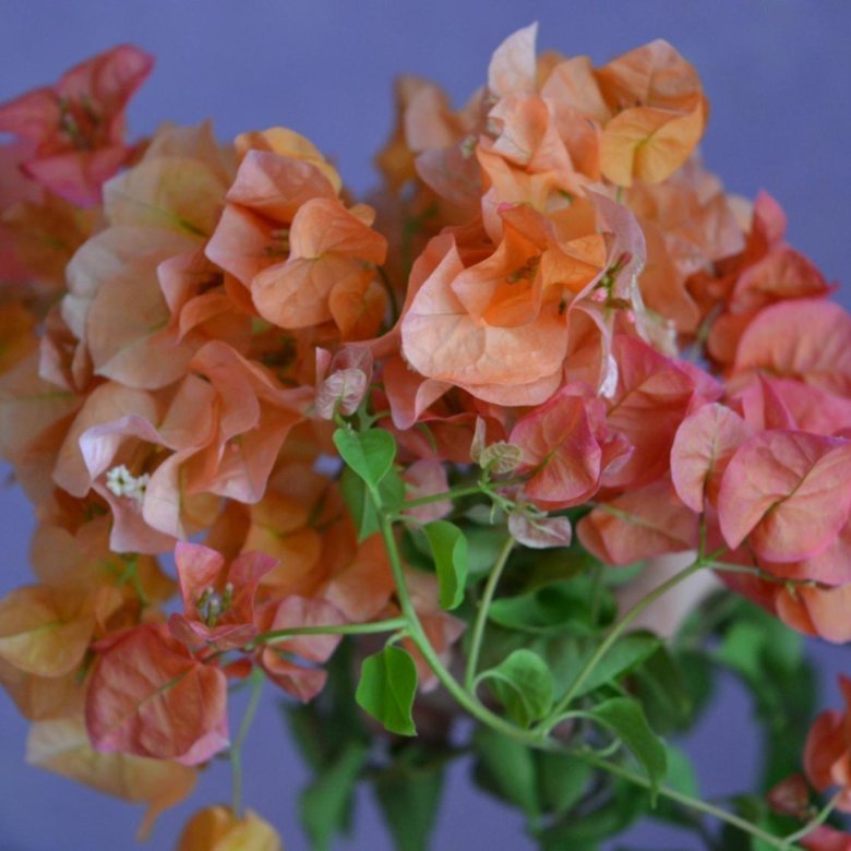 Мечтой селекционеров остается Бугенвиллия без шипов и с голубыми прицветниками.