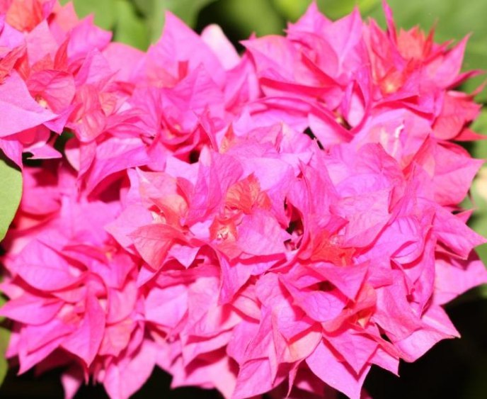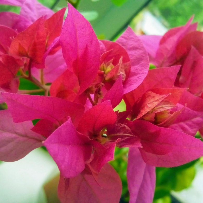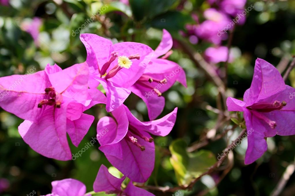 Цветы и прицветники Бугенвиллии крупным планом