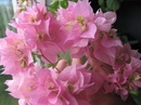Сорт Double Pink отличается от предыдущего более нежными тонами и чуть зеленоватым основанием махровых прилистников.