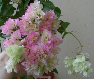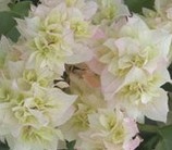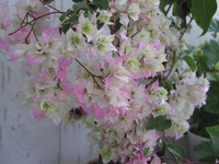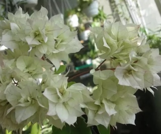 Бугенвиллия White Cascade — отличается прицветниками слоновой кости. Некоторые растения этого сорта имеют на прицветниках розовую окантовку, что придает растению большую элегантность.
