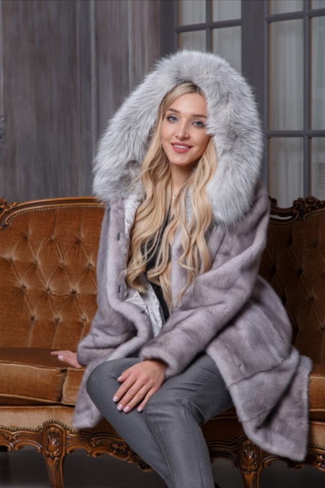 Шуба из чернобурки с капюшоном