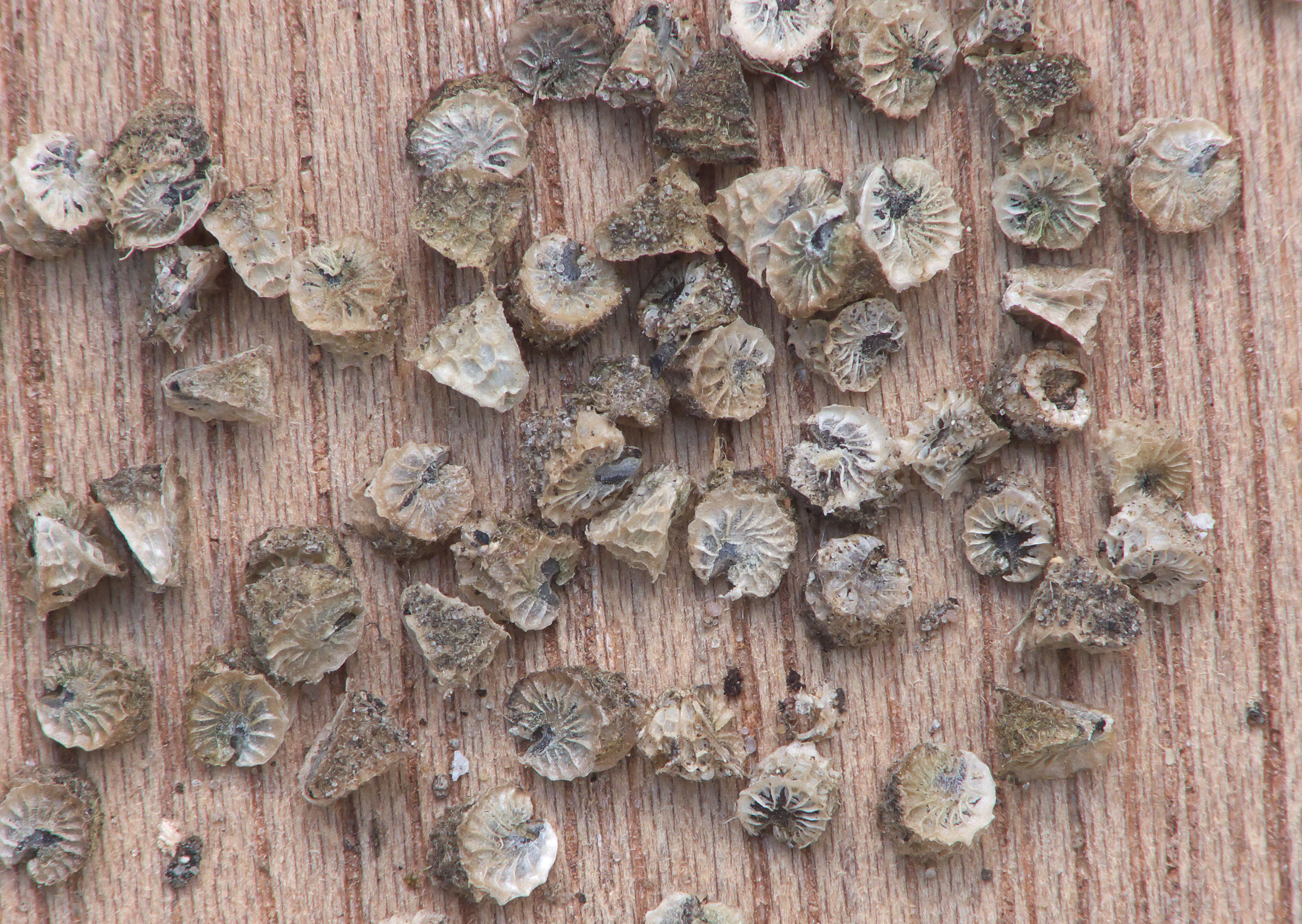 Семенная коробочка мальвы имеет округлую и немного приплюснутую форму и состоит из 5 чашелистиков, под которыми находятся семена. Семечки имеют серый цвет и двойное зубчатое окаймление, состоящее из мельчайших пластинок пшеничной окраски.