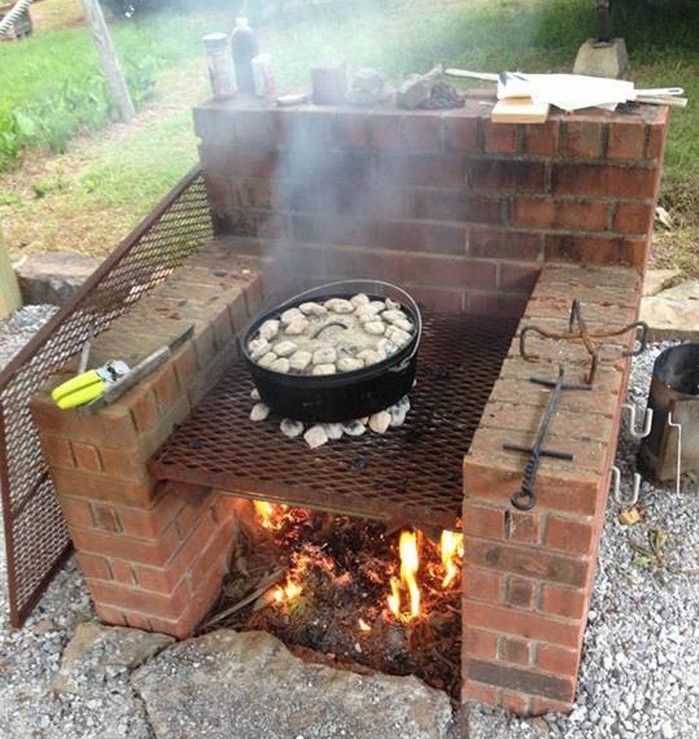 Не забудьте на кирпичное дно установить металлическую жаровню, а в кладке делать небольшие щели для доступа воздуха.
