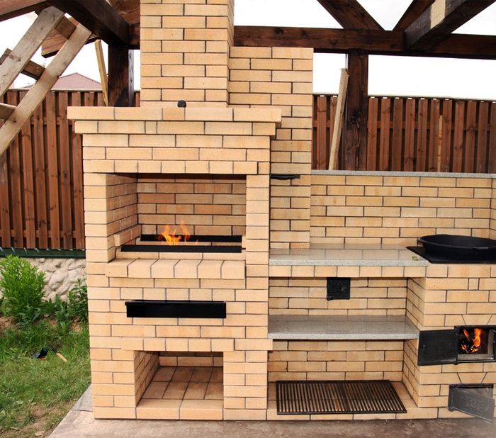 - из-за того, что кирпич не выносит влажность и перепады температур, эту конструкцию нельзя устанавливать под открытым небом. Желательно сделать навес;