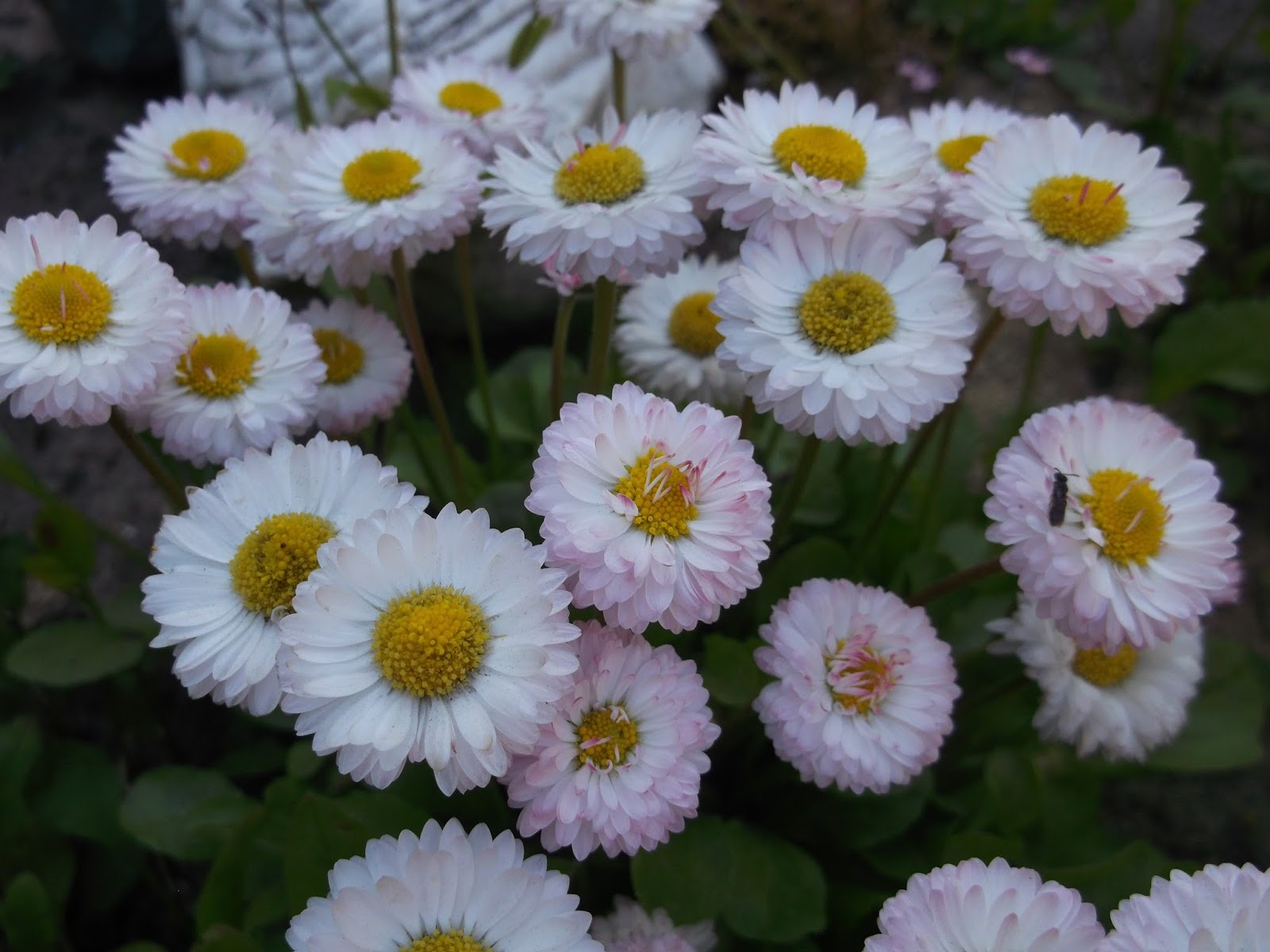 - Посадить семена можно сразу в почву, сбрызнув водой. До появления ростков накрывают пленкой, иногда утепляют. Маргаритки редко зацветают в первое лето, длинные стебли лучше срезать для обильного цветения на второе лето.