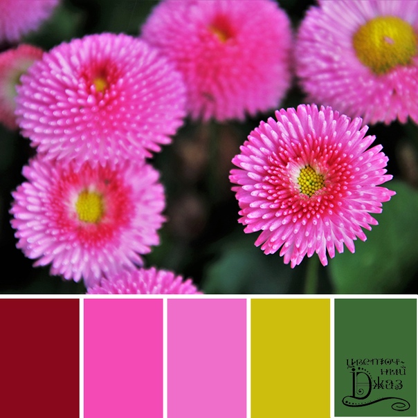 Цветы – это корзинки со срединой с трубчатыми лепестками, по краям – язычковыми. Оттенки лепестков могут быть белыми, розовыми, бордовыми, пурпурными, вишневыми. Цветы также могут быть простыми, полумахровыми, махровыми.