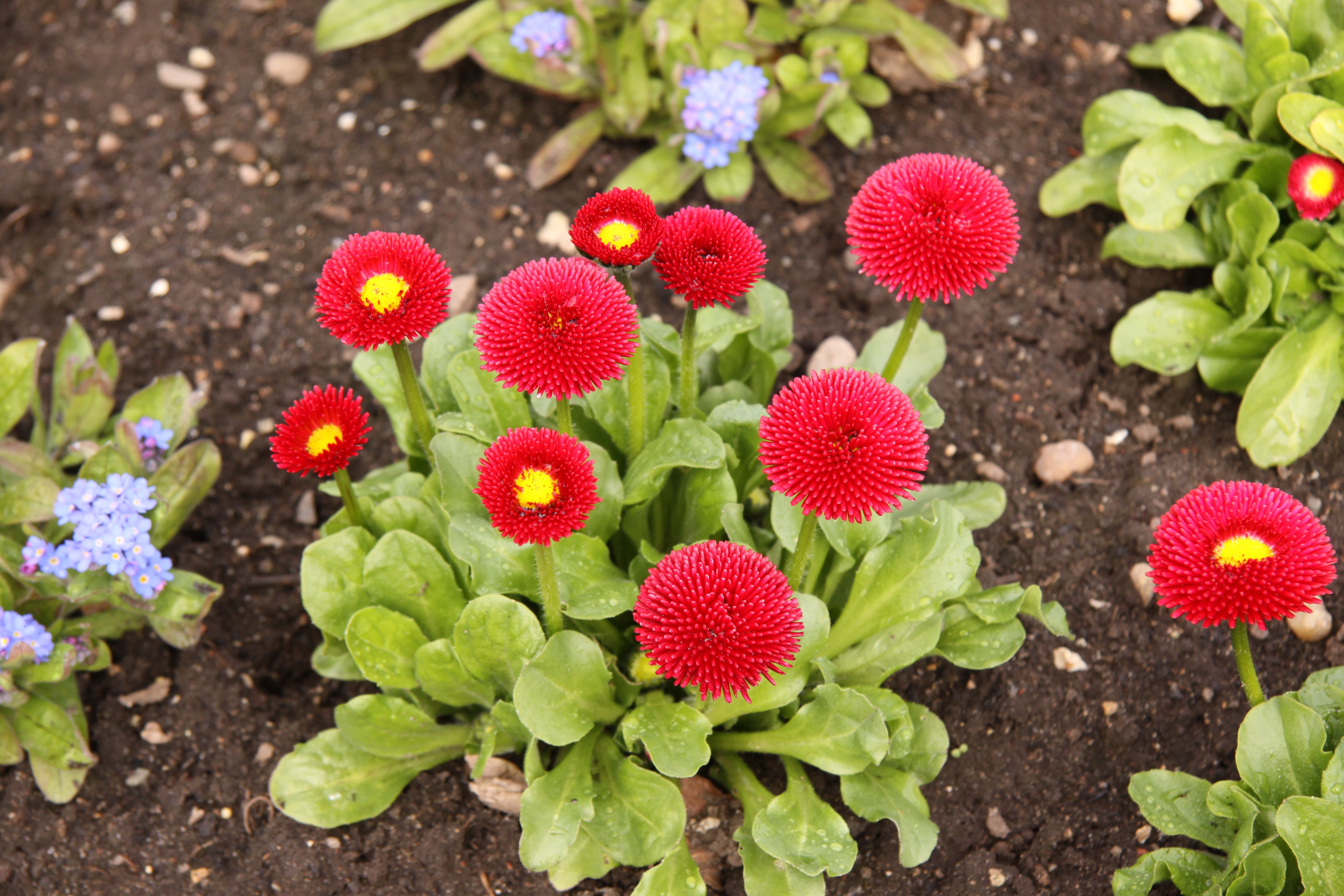 Грунт в месте посадки должен быть хорошо дренированным. Цветы маргаритки хорошо растут на суглинистых почвах, хорошо удобренных компостом. Корни у цветка располагаются неглубоко, и от пересыхания почвы соцветия мельчают, теряют яркость. Махровые цветы теряют свою уникальную форму.