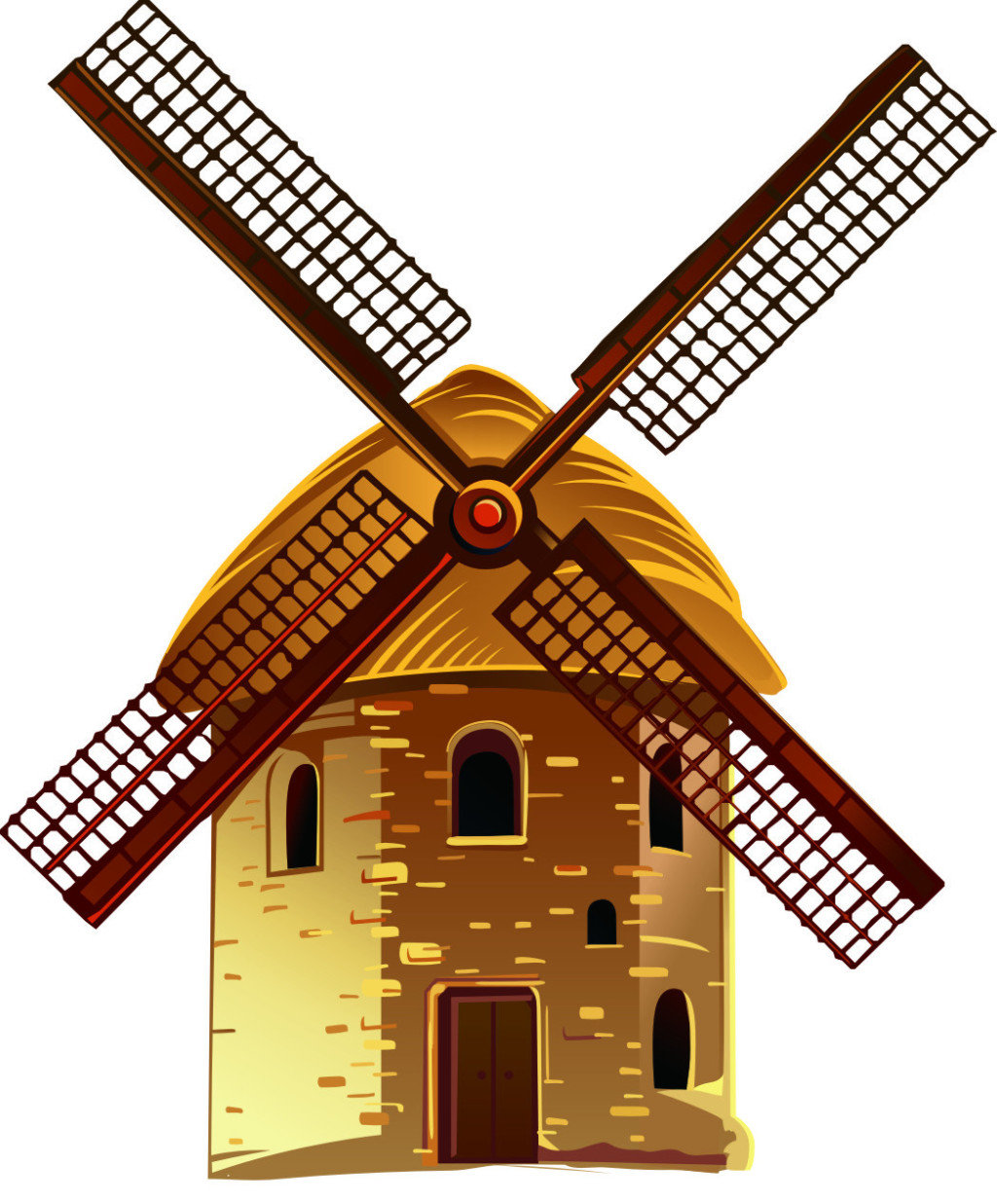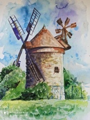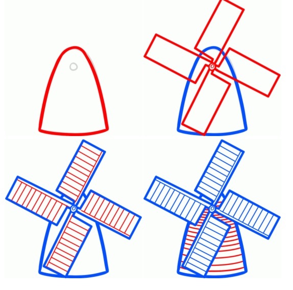 Учимся шаг за шагом рисовать мельницу с четырьмя крыльми