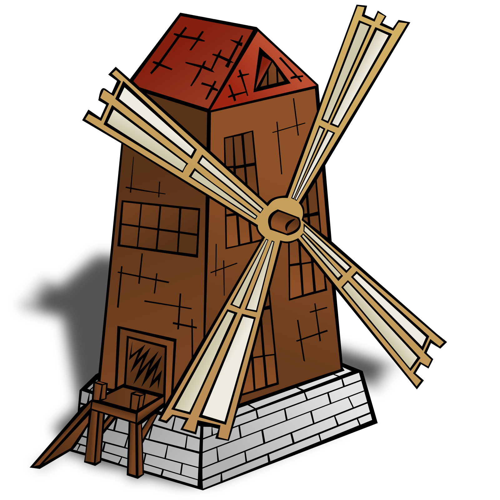 «Классическая» ветряная мельница, как правило, имела 4 удлиненные четырехугольные крыла. На одной оси было расположено 2.Они представляли собой решетку, которая помогала в направлении энергии ветра.
