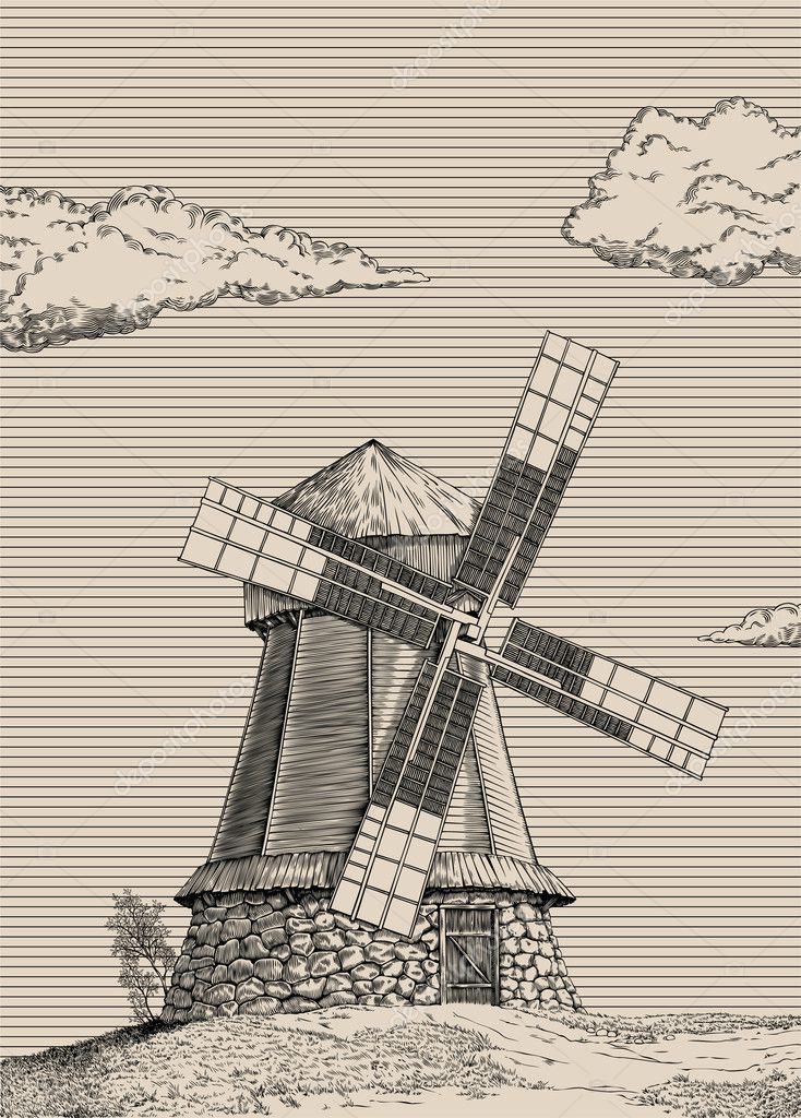 как рисовать мельницу