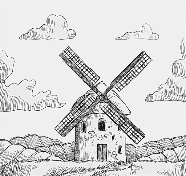Как Нарисовать Ветряную Мельницу Карандашом …