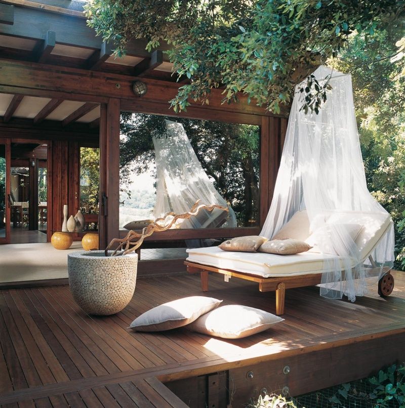 Зона отдыха в саду для принятия солнечных ванн