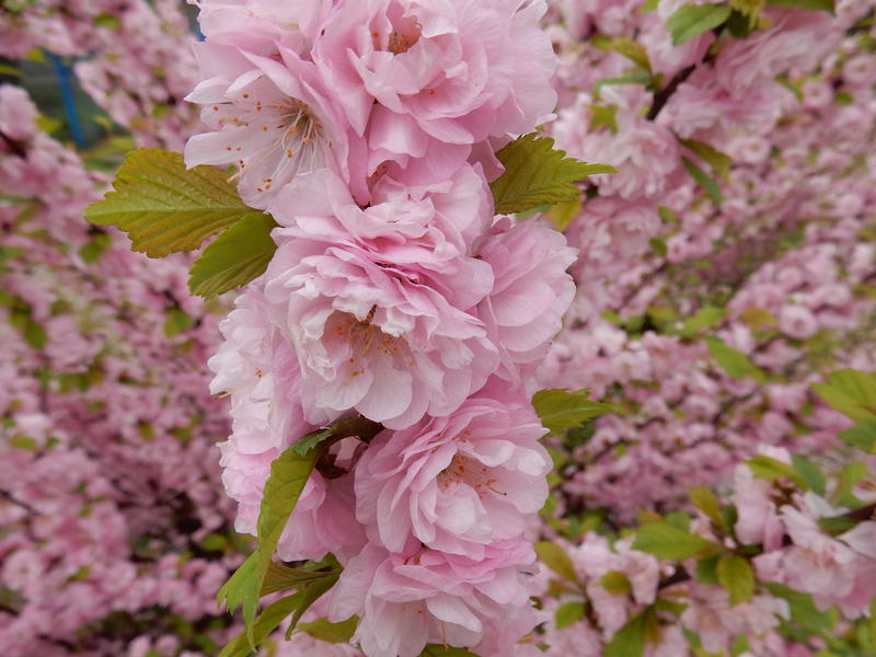 ‘Плена‘. Раскидистый куст, 2 м в высоту. Цветки махровые, розовые, 10 чашелистиков, лепестков 48. Цветоножка 10 мм длиной. Цветет в мае около 10 дней. Распускаются цветки после того, как раскроются листья.