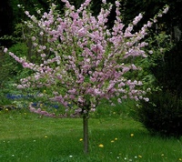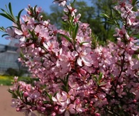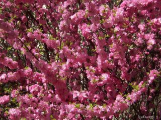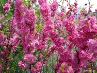 ‘Киевская‘. Куст или деревце до 3 м высотой. Цветки розовые, махровые. Цветет очень обильно в конце апреля в течение недели, распространяя вокруг приятный легкий аромат.