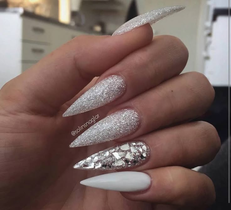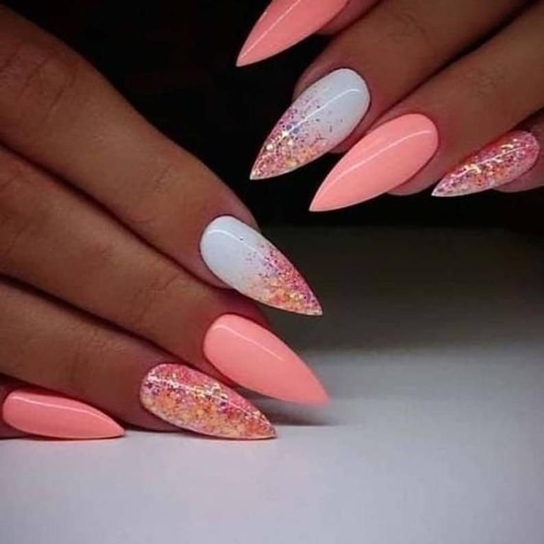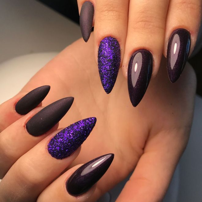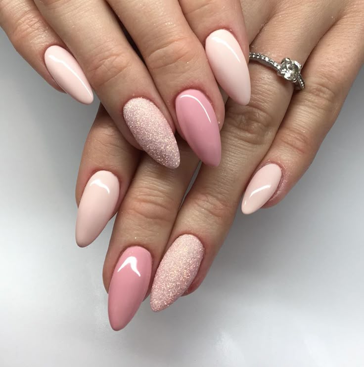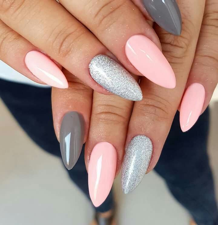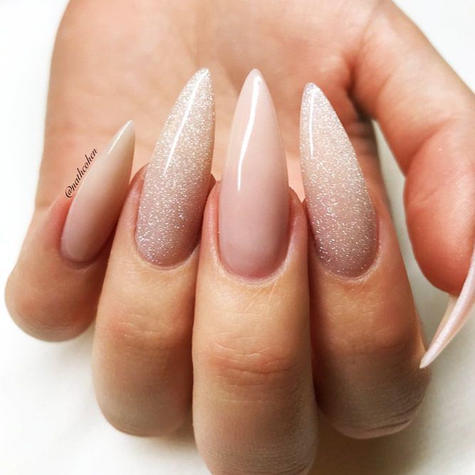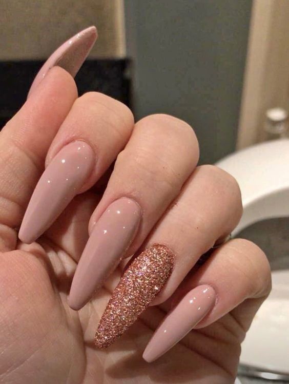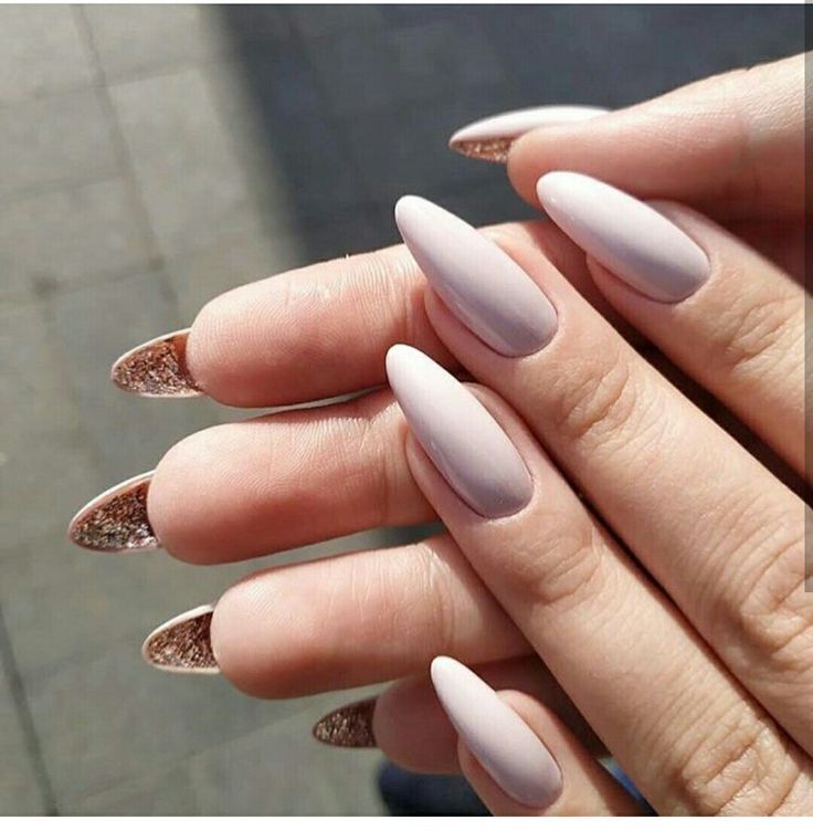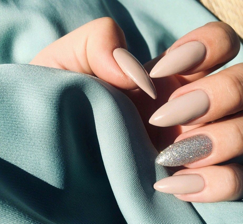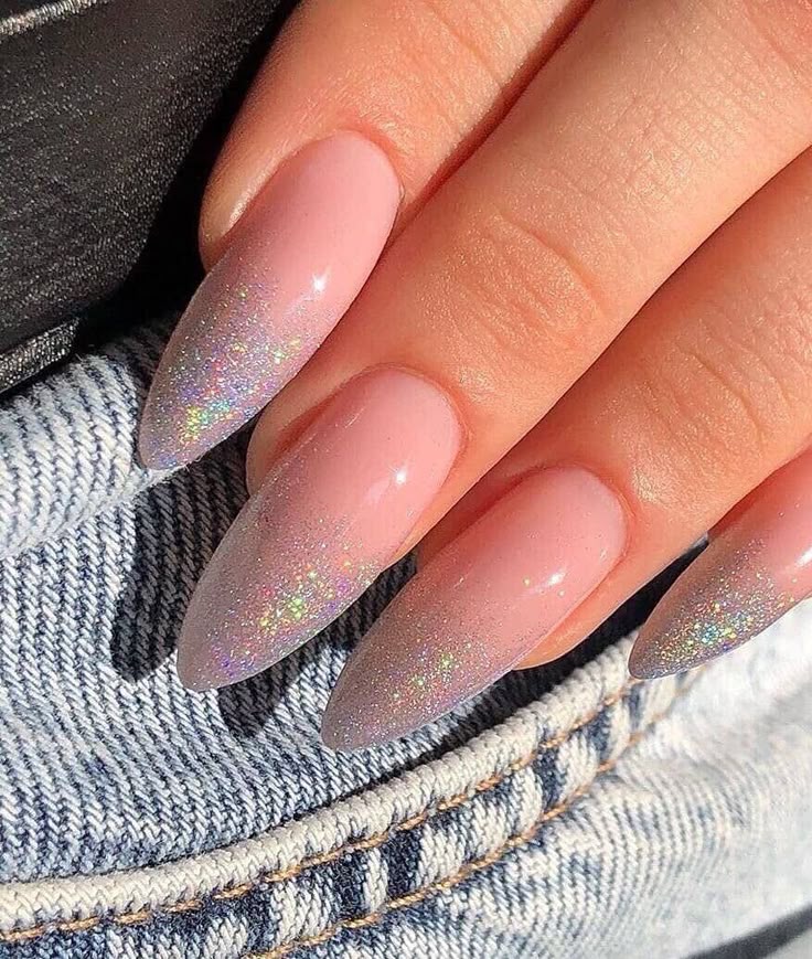 Маникюр с блестками будет отличной идеей для модного дизайна миндалевидных ногтей.