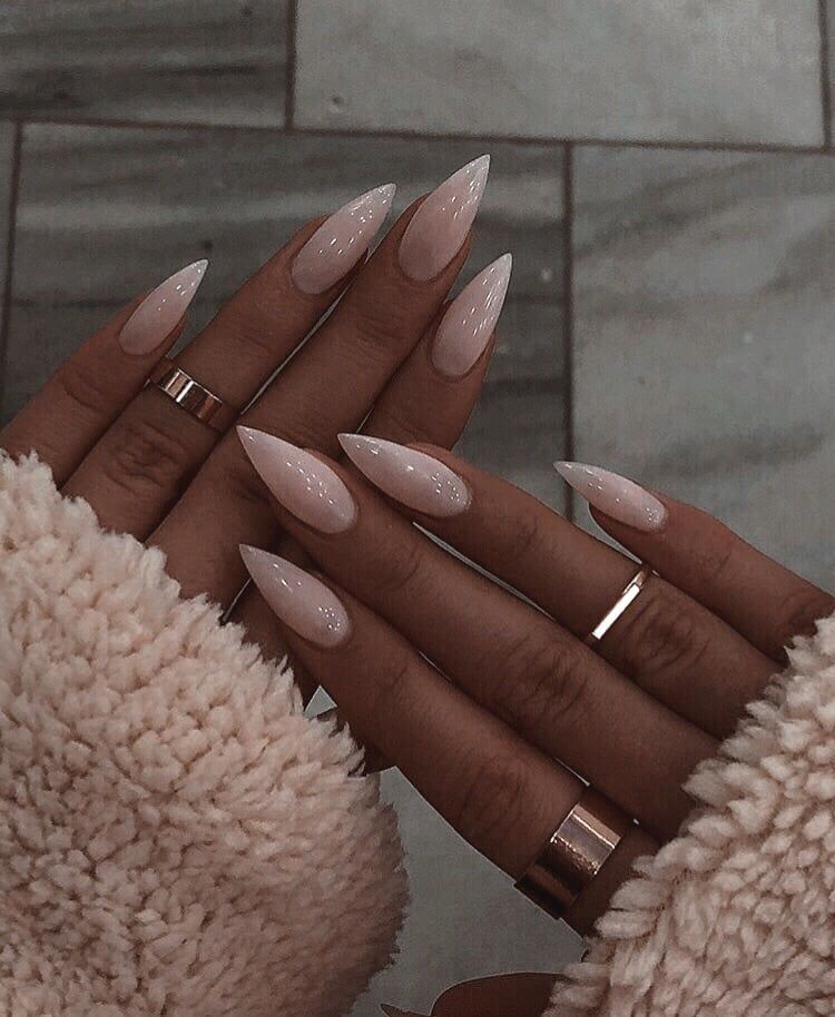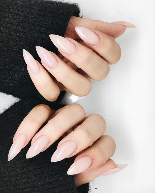 Светлые нюдовые оттенки лаков делают миндальные ногти еще длиннее и женственнее. В 2021 году в тренде такие нюдовые оттенки: