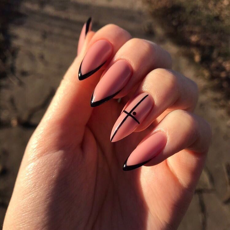 Геометрический рисунок — один из лучших способов подчеркнуть удлиненные миндальные ногти в 2021 году. У вас будет достаточно места, чтобы использовать контрастные формы, цвета и углы, чтобы привлечь внимание к вашему маникюру. Обязательно используйте два очень контрастных цвета — например, черный и телесный — чтобы резкие узоры выделялись. Маникюр геометрия очень эффектно смотрится на ногтях миндальной формы.