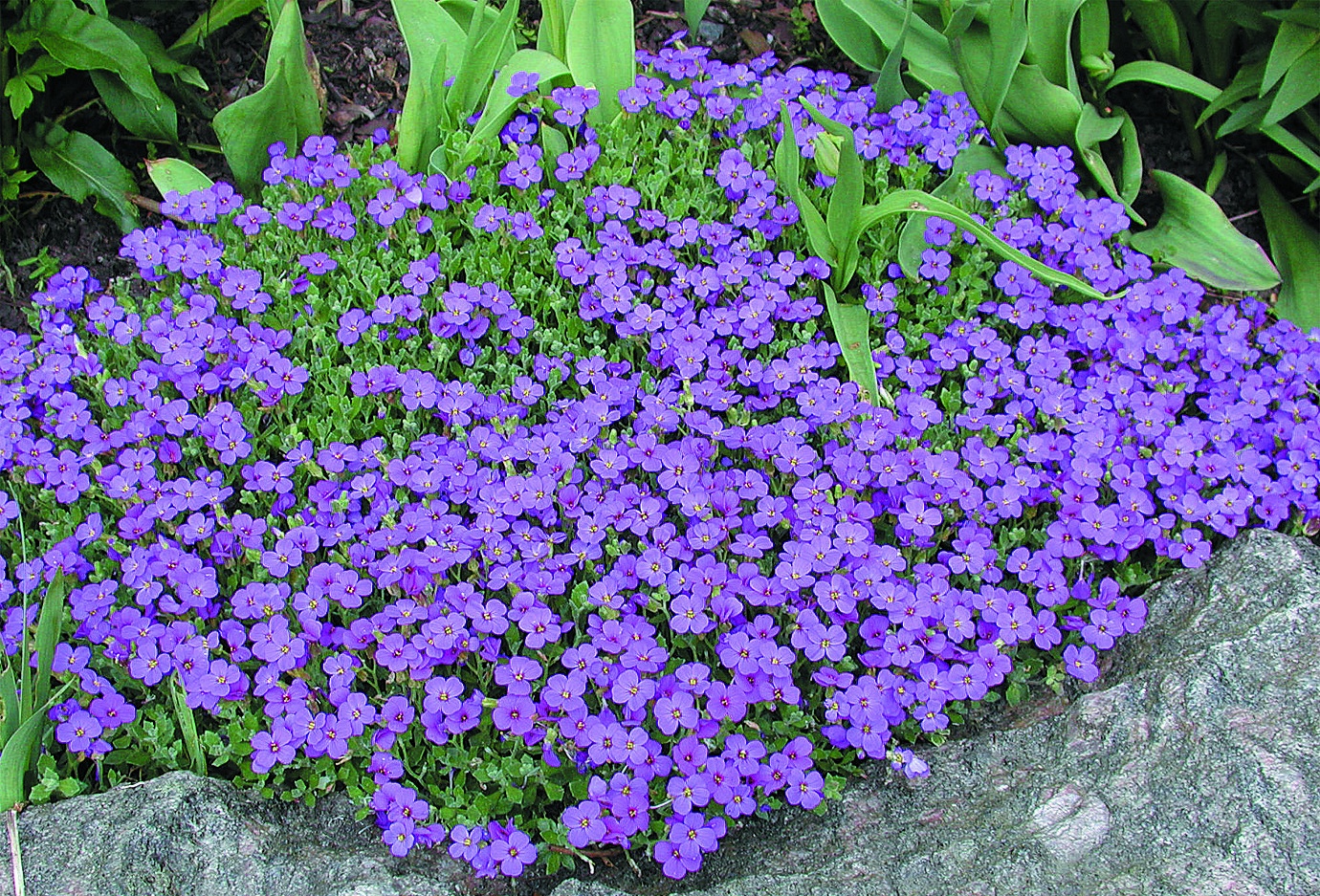 Самые популярные у отечественных цветоводов низкорастущие и цветущие летом культуры представленытрехцветной фиалкой, шалфеем дубравным, геранью, гипсофилой метельчатой, горечавкой, флоксами, манжеткой мягкой, колокольчиками и обриетой, но чаще других выращиваются: