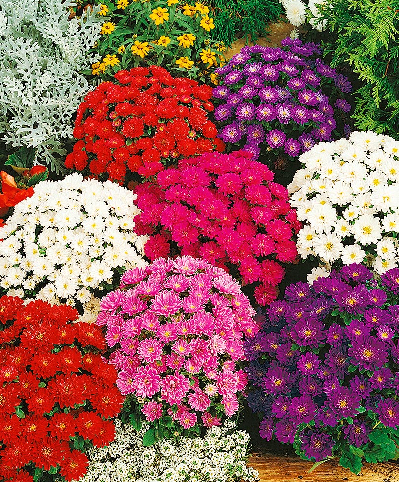 «Цвета осени» представляет собой смесь прекрасных цветов желтого, оранжевого и красного цветов в различных сочетаниях. Это более короткое растение, достигающее высоты около 2 футов и наслаждающееся полным солнцем.С лета до осени они увенчаны множеством этих ярких цветов, которые иногда достигают 4 дюймов в диаметре! -