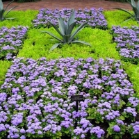 Низкие или карликовые цветущие растения условно можно разделить на солнцелюбивые и теневыносливые культуры. Для небольших клумб могут быть рекомендованы композиции на основе агератума, и смеси низкорослых астр, которые отлично дополняются смешанной вербеной, бархатцами, льном и немезиями, которые неприхотливы, очень быстро приживаются и способны стать украшением в период с ранней весны и до поздних осенних дней.
