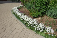- бордюрную часть создаваемой куртины рекомендуется в середине апреля оформить мелкоцветковой и пышно цветущей обриетой.
