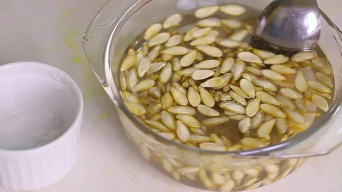 — Тыквенные семечки промыть и замочить в воде на 2.5 часа