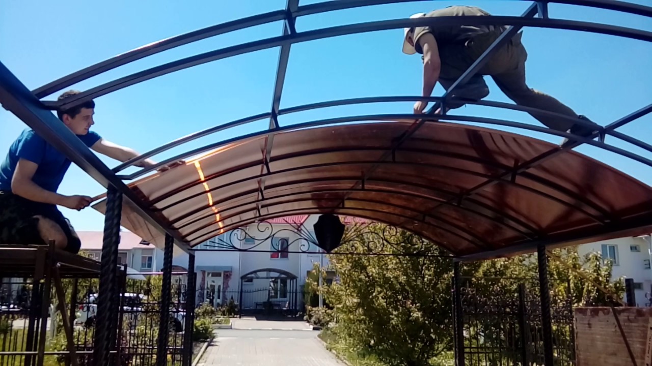 Если возводят арки или купола, поликарбонат сгибают поперек ребер жесткости.